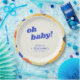 This personalized baby shower paper plate features a playful “oh baby!” message framed by a painterly, abstract border with soft, textured color. The cheerful typography and clean center layout make it easy to customize with names while keeping the design bold and fun.