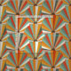 A retro fan pattern in shades of green, burnt orange, gold and brown.