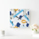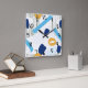 Retro Abstract Navy Blue Yellow Elegant Modern Art Square Wall Clock