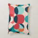 Soft yet striking, this "Retro Shapes" throw pillow features a rhythmic, overlapping pattern of smooth pebble and egg silhouettes. The organic, rounded forms are rendered in a sophisticated mid-century palette of muted teal, vibrant coral, terracotta, and deep midnight navy. Playful clusters of stippled dots add texture and movement to the composition, set against a warm cream background. This design perfectly captures the cheerful, optimistic aesthetic of vintage abstract art, offering a refined pop of color and shape for any modern living space.