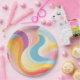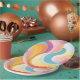A fabulous retro party plate. This muted 70's vibe design features a soft colorful boho rainbow abstract in purple, orange and blue. A gorgeous retro tableware design that will stand out from the crowd.