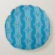 Retro Abstract White Lines on Blue Pattern Round Pillow