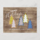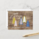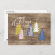 Retro Abstract Xmas Trees On Woodgrain Pattern Postcard