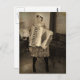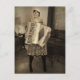 A retro looking photo in sepia tones shows a girl playing accordion.