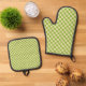Retro Aesthetic Checkerboard Pattern Green and White Oven Mitt & Pot Holder Set
