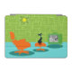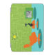 It is said that dogs have owners and cats have staff. The feline on this Retro Space Age Kitty iPad Mini Cover couldn't agree more! The 1960's style, minimalist art design features a sleek, black cat in a mid century modern living room. The sophisticated room prominently features a green, stone wall. The carpet is aqua with teal shadows. The furnishings of the room include a yellow, sputnik light figure, an orange lounge chair with matching footstool and a green television with rabbit ears. The lucky black cat can be seen perched on the footstool in front of the television. Its favorite show is on! On the television screen, we can see a black and white, classic television family solving all of life's problems in a half hour show. This design is purrrfect, if we do say so ourselves.