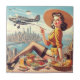 Retro Airplane Pin-up Illustration Ceramic Tile