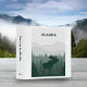 Modified, retro, Alaska travel poster for front of this travel scrapbook and/or photo album. The image is of a large moose standing in a meadow of a large forest with pine trees with misty gray mountains in the background. The image is modern with shading colors of green and gray/grey, with dark green text. Binder is a white background. Templates provided on spine. Perfect for your vacation scrapbook memories and/or photos from a trip to Alaska.