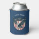 Get a classic, timeless look with our Retro American Eagle can cooler, featuring the iconic stars and stripes in patriotic red, white, and blue on a blue background. Personalize it with your monogram.