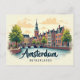 This vintage postcard brings the charm of Amsterdam to life with its iconic canals, leaning houses, and timeless bicycles. Capturing the essence of the Netherlands' capital in a retro style, it’s perfect for collectors, travelers, and lovers of European nostalgia.