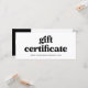 This trendy, boho black and white small business gift certificate features stylish retro typography. There is a spot for your logo on the back.