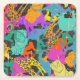 Retro Animal Silhouettes Pattern Square Paper Coaster