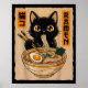 Retro Anime Kawaii Black Cat Eating Ramen Noodles Poster