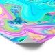 This Original Digital Oil Painting by My Rubio Garden features a Groovy Retro Aqua Blue, Pink and Pastel Yellow Liquid Abstract Art Design with a Colorful Abstract Garden Foliage Background. The result is a cool abstract painting that you will love!