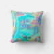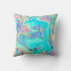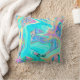 Retro Aqua Blue Liquid Art on Abstract Hydrangeas Throw Pillow