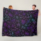 Retro Aqua Purple Floral Blossoms Fleece Blanket