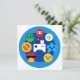 "Retro Arcade Fun" brings back the nostalgia of classic video games with eye-catching graphics and bold, primary colors. The design features iconic elements like Pac-Man, Space Invaders aliens, and others, all arranged to create a playful and energetic composition. This style appeals to gamers of all ages, from kids discovering retro games to adults who grew up with classic arcade cabinets. It's perfect for gaming-themed parties, birthdays of tech enthusiasts, or for those who want to add a touch of retro fun to their celebration. The versatile design works well for various age groups and can be adapted for children's parties or adult gatherings with a hint of nostalgia.