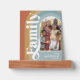 Retro family picture ledge featuring a boho vintage colored rainbow arch backdrop, the word 'family' in a bold white font, a photo for you to replace with your own special memory, your name, and year established.