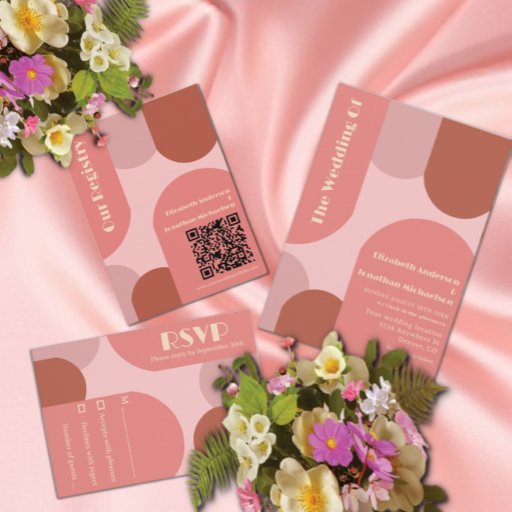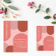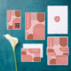 Wedding collection with trendy arches featuring coral, dusty rose, blush pink and terracotta with soft peach typography