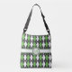 Argyle goes retro 8-bit with this green, gray, white, and black color scheme which hearkens back to old-school arcade games. Customize the monogram with your own initial to make a unique accessory. This bag is available in multiple sizes and both tote bag and cross body bag styles.