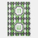 Argyle goes retro 8-bit with this green, gray, white, and black color scheme which hearkens back to old-school arcade games. Customize the monogram with the appropriate initial for a personalized touch.