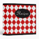 Traditional red and white argyle with a black stitching pattern decorates this recipe binder. Use this retro style binder as a recipe binder, recipe book, recipe organizer, cookbook, kitchen binder, kitchen organizer, gift, scrapbook, etc....The designs are from original art.
