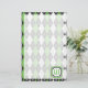 Argyle goes retro 8-bit with this green, gray, white, and black color scheme which hearkens back to old-school arcade games. Customize the monogram with the appropriate initial for a personalized touch.