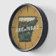 Stylish wall clock features retro style Arkansas state silhouette and lettering. Perfect for living room, game room or bedroom decor.