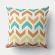 Retro Arrows Chevron Orange Teal Gold Throw Pillow