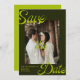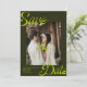 Announce your wedding in style with this Retro Art Deco Save the Date card. Featuring a bold dark olive green background with whimsical chartreuse text, this unique design combines vintage elegance with modern flair. The customizable photo layout adds a personal touch, while the art deco typography brings a timeless, retro-inspired feel. Perfect for couples seeking a stylish and distinctive way to share their wedding date, this Save the Date is available as a digital download or printed card for effortless wedding planning.
