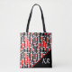 Retro Art Deco Red Black Abstract Pattern Monogram Tote Bag