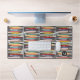 This backgammon desk mat has a retro atomic age design with lots of vintage colors, atomic and explosion symbols used on the game pieces. A super fun pattern for anyone that loves retro mid century modern designs and the game of backgammon. The pattern on this desk mat can be made small or larger.