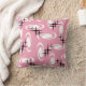 Retro Atomic Age Swirls Stars Pattern Pink Throw Pillow