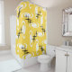 Retro Atomic Age Swirls Stars Pattern Yellow Shower Curtain