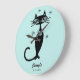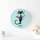 Fifties retro look black cat personalized aqua kitchen clock gift idea fifties style.