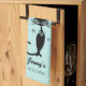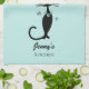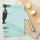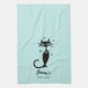 Fifties retro look black cat personalized aqua kitchen towel gift idea fifties style.