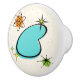 This Retro Atomic Boomerang and Starbursts pattern ceramic pull is the epitome of mid-century modern. With its large turquoise boomerang surrounded by kitschy starbursts and orange and green circles for some extra whimsy, this vintage inspired pattern is mod enough to be stylish and retro enough to be classic. Be the coolest cat on your block with this minimalist design.