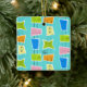 This Retro Atomic Kitsch Ceramic Christmas Ornament features so many kitschy shapes and so many kitschy patterns. The Palm Springs inspired pattern features a turquoise background and oodles of wonderfully 1960’s line drawings. It’s almost too cute to describe! A vintage, pink shape features a retro trailer and car. A yellow block features a juke box. A blue shape features a sophisticated woman carrying a martini. A green space age shape holds a starburst clock and a classic television set. A lime block has a cat and a mid century modern record player. And an orange shape features a classic finned car and a roadside diner sign. What’s not to love?