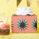 Fun mid-century retro atomic sunburst pattern in turquoise and black on pink background.