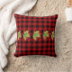 Retro Autumn Fall leaves red rustic black plaid Throw Pillow