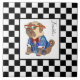 Retro B&W checkerboard, hipster pug, personalized Ceramic Tile