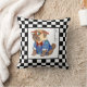 Retro B&W checkerboard w/ Hipster Pug & Name Throw Pillow