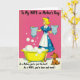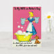 Designed with a retro look, the illustration features a smiling blonde woman centered against a fuchsia background, her rosy cheeks and neatly curled hair giving her a sweet, affectionate glow ❤️. She wears a bright blue dress dotted with white stars, topped with a white apron, and she holds up two tiny striped baby outfits as if showing them with gentle pride. To her left sits a sun-yellow claw-foot wash tub piled high with white foam, with a few bubbles floating upward like little kisses in the air. At her right foot, a small brown dog with a blue collar sits close and attentive, adding a cozy note of companionship. The colors stay flat and simple—red slippers, creamy whites, and bold pink—making the scene feel friendly and direct. Any lettering appears near the top in a light-colored, easy-to-read style that stands out against the pink, with smaller text placed below in a darker tone for contrast 🌼. The background remains a solid fuchsia field behind the woman, the tub, and the dog, with white bubbles drifting between them.