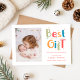 Celebrate your newest little blessing with this modern and playful birth announcement holiday card. Featuring a colorful “Best Gift” design and space for your baby’s photo, it perfectly captures the joy of a Christmas arrival. Ideal for sharing your newborn’s name, birth details, and first holiday greeting with loved ones. Add your custom text for a keepsake full of warmth and cheer. Personalize yours today.