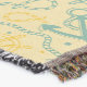 A quality printed throw has its advantages. This is a much finer weave throw than its loopier cousins, and though lighter, it is worth the investment for custom room accessorizing. The back is much prettier than the typical brown, and the fringe on the long sides very vivid, the selvage nicely done. Before photographing, I washed the throw in cold water, delicate, with a thicker woven throw the same size. On tumble dry low, this throw was dry in half the time as the other. This is a very practical quality if you use throws for furniture covers or to wrap up in frequently. The sleekness of the fabric makes it a great layer for accenting or protecting without the feeling of sitting on too much stuff. Perfect for napping or when you feel a light chill coming on. The color printing is beautiful and on this fabric, matched the design and color of my Photoshop image. This is an advantage for blending room fabrics and colors. The fringe on the short sides prints the colors from the design image and therefore varies from the side fringe. I streaked a white fractal line through the plaid pattern to give the illusion of weaving. This printed as crisp as an illusory thread, and put some white in the short side fringe, showing another advantage of print vs loomed- for artistic purposes, line lines, detail, and color integrity can be planned and preserved. My loomed throws have color limitations and more of a needlepoint texture. Print throws reproduce an exact image. The throw felt a little stiff straight out of the package, but this went away in the first delicate wash. Of course I searched the wash water for ink or bleeding and there was none.