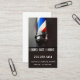 A red white and blue retro style barbershop pole photographic image on gray background. has an urban look that can be a great marketing tool for your barbershop or other mens' grooming business. Customize with company details on front and back.