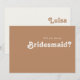 This retro beach | brown bridesmaid proposal card is perfect for your simple vintage, colorful tropical boho summer wedding. Its unique bohemian mid-century font gives this design a classic minimalist groovy hippie vibe. Suppose you're looking for a design that features bright, rustic coastal ocean colors for your creative 70's destination beach wedding. In that case, this product, and its coordinating wedding collection, are what you're looking for. Feel free to change the color add your own artwork, graphics, or photos. If you have any questions about the design of this product, please feel free to reach out to us!