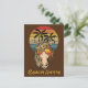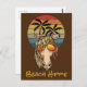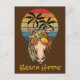 Retro Beach Hippie Horse, Setting Sun n Palm Trees Postcard