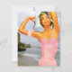 Invitation featuring a vintage 1950s illustration of a woman in a swimsuit with a photograph that I took of the ocean in the background. Customize it with your own text. Retro cool!