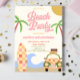 Retro Beach Party Surf Board Pink Birthday Party Invitation